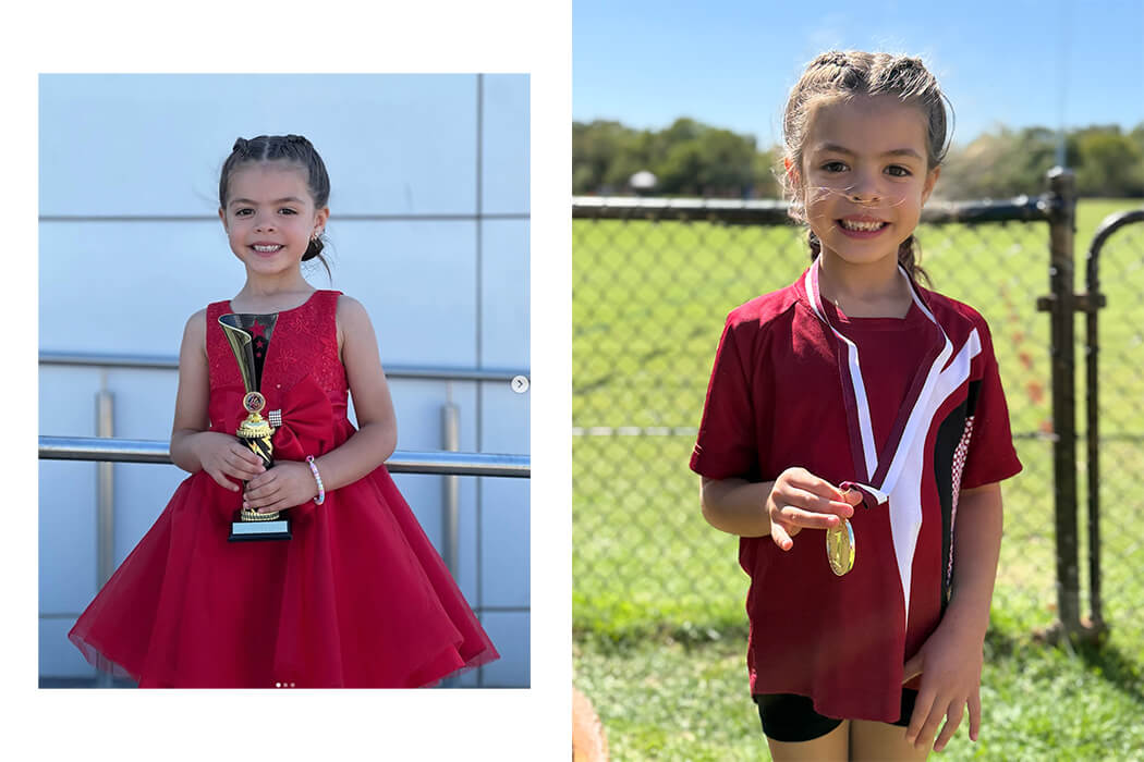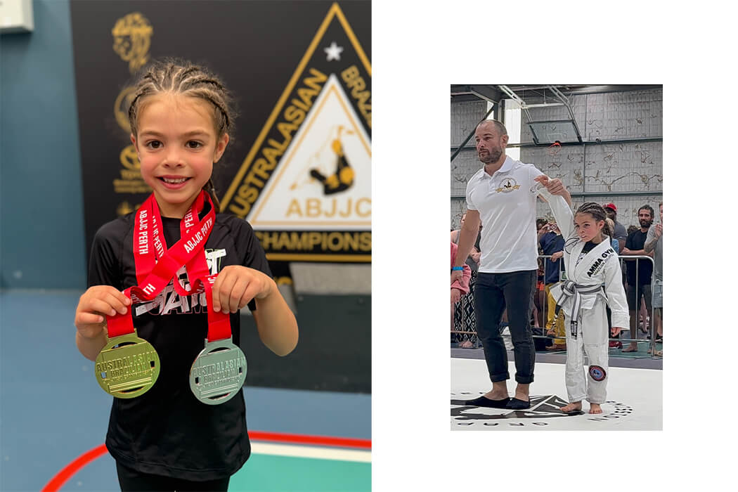 I do Brazilian Jiu Jitsu and athletics—I’m super fast at running! Not so great at throwing though. I also write stories and ride my bike with Mum. And when it’s hot, we go swimming. Splashing around is the best.