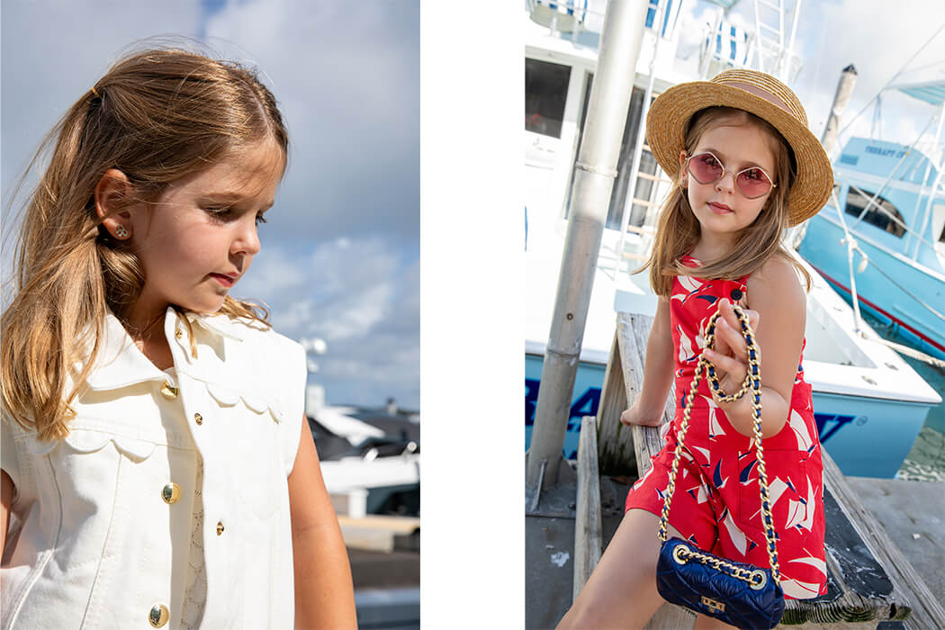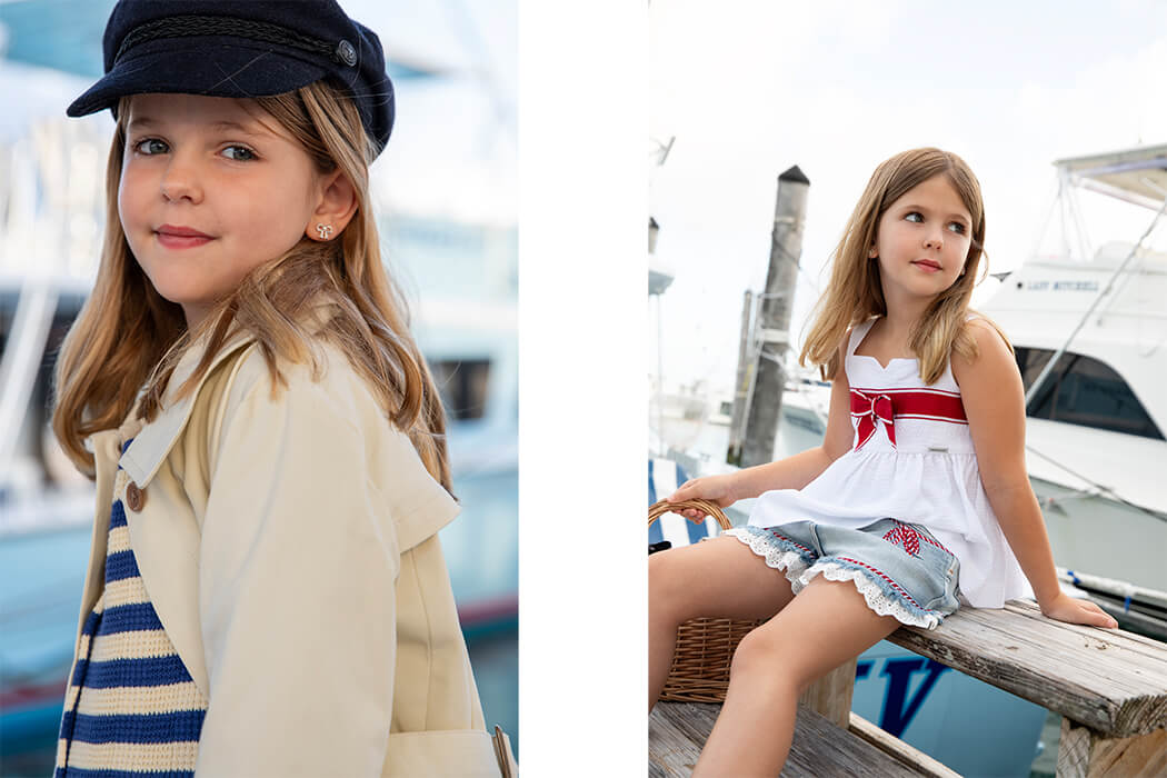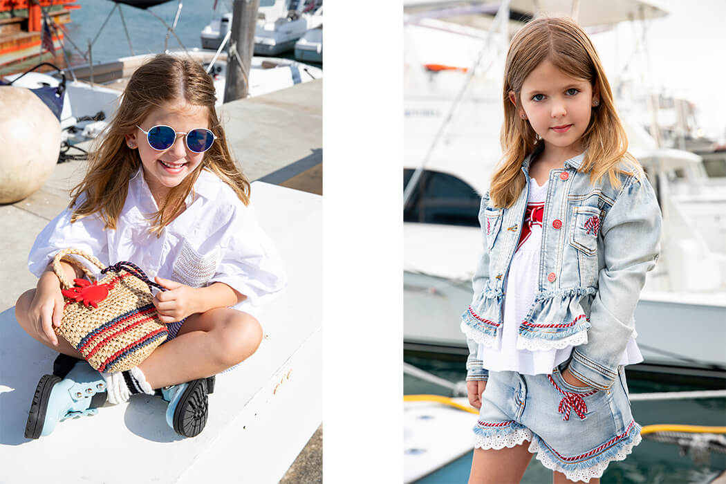 Nautical style has always been a favorite in summer fashion—and for good reason. Whether it’s crisp whites, chic navy tones, sharp stripes, bold reds, or classic maritime motifs like boats, anchors, and ropes, the look remains timeless, effortlessly chic, and undeniably sophisticated. Best of all, it never compromises on comfort. In this fashion editorial, we give the nautical theme a playful, modern twist for kids. As we wander the marina, befriend a curious pelican, and listen to sailors’ tales, the story unfolds like a sunny daydream—where fashion meets adventure by the sea. It’s a celebration of summer elegance through the eyes of young adventurers.