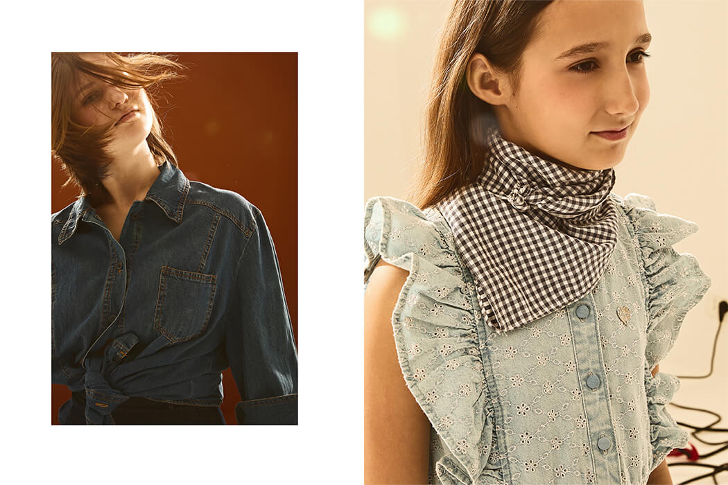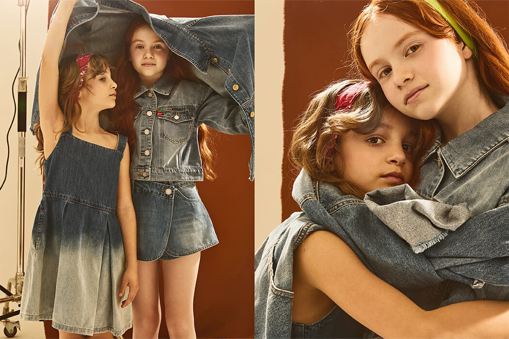 Left: Red Top: Manila Grace @manilagraceofficial Wide legs jeans: Refrigewear 1954@refrigwear1954 Right: Denim strass veste Y-Clù@yclu_official shorts Diesel@bravekid Hat Stella McCartney Kids Boots NeroGiardini@nerogiardinikidsLeft: dress Max & Co @bravekid Red bandana H&M @hm Right: jacket and skirt Manila Grace @manilagraceofficialtrench coat, shorts and bag Max&Co @bravekid Hoodie Diesel @bravekidDress and jeans Marni @bravekid Hat Stella McCartney KidsLeft: Jacket Manila Grace @casillogroup Right: Dress Guess Kids @guesskidsSparkling denim dress Diesel @bravekid T-shirt N°21@bravekid Denim hat StellaMc Cartney Chambray dress Guess Kids @guesskidsFrom left Dark denim blazer and trousers IDO@idokidswear T-shirt MM6 Margiela @bravekid shirt and bermuda Refrigwear 1954 @refrigwear1954 hat Stella McCartney Stripes t -shirt and jeans Tommy Hilfiger @tommyhilfiger jacket Original Marines @originalmarines Shorts style skirt Y-Clù @yclu_official T- shirt Manila Grace @manilagraceofficial dress and jeans Marni @bravekid Bandana H&M @hm