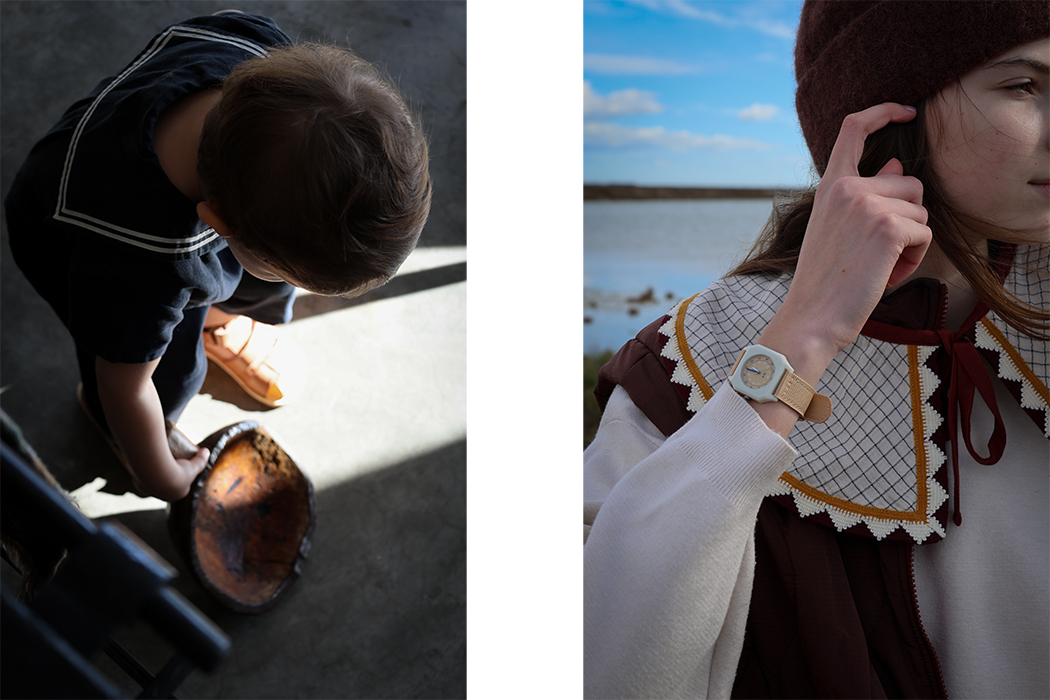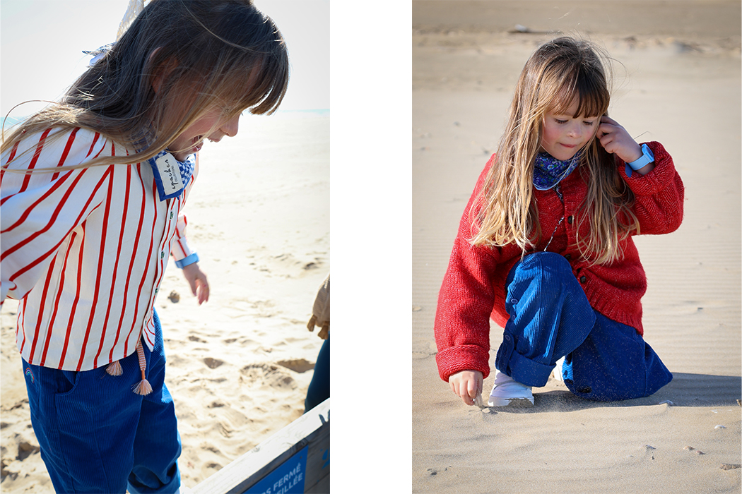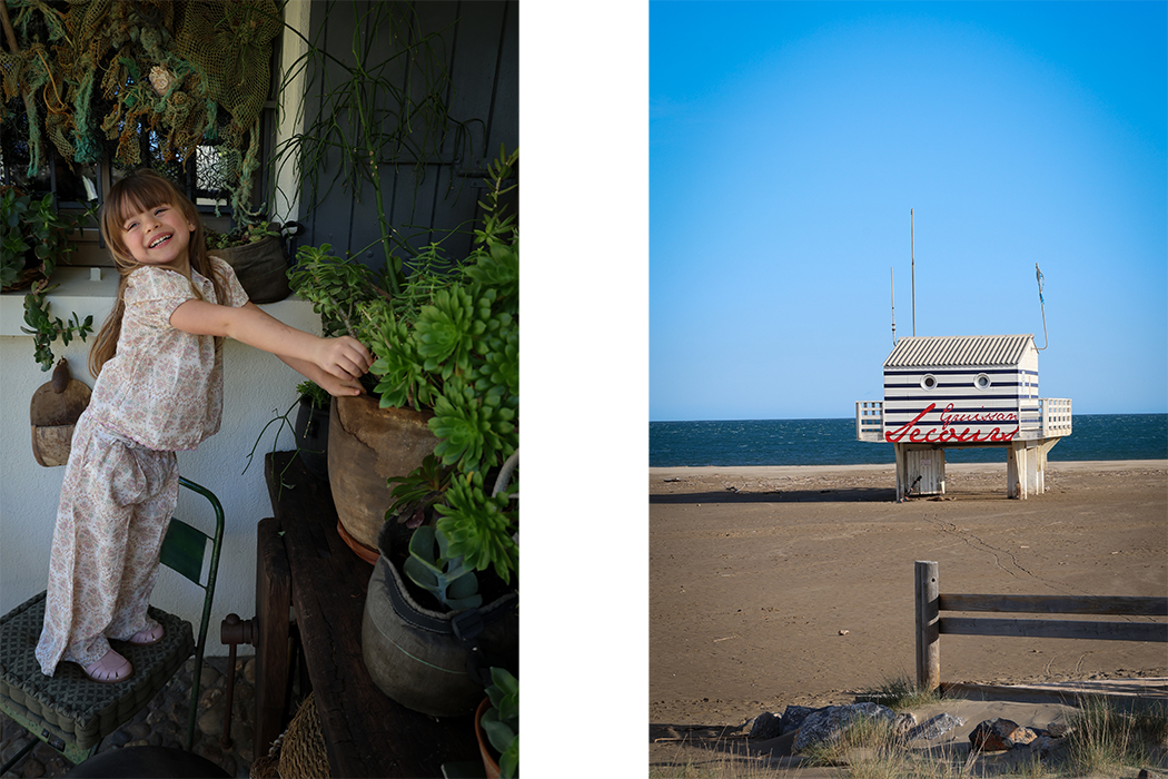 Early spring in Gruissan. The sun teases with warmth, yet the crisp breeze lingers, whispering the promise of summer. The season calls for effortless layering—soft knits over breezy linens, relaxed tailoring that moves as freely as childhood itself. The beach transforms into a runway where comfort meets whimsy. Lightweight jackets flutter in the wind, scalloped collars frame sun-kissed faces, and delicate embroidery mirrors the seashells and wildflowers collected along the shore. Puddles invite playful splashes, where rubber boots and waterproof overalls turn every step into an adventure. Textures shift with each joyful leap, proving that fashion is not just about style—it’s about movement, expression, and freedom. And then, that feeling—when you return home, cheeks rosy from the sea air, the scent of salt still lingering. A pie bakes in the oven, tea brews with fresh fruit, and tiny hands arrange collected shells, turning them into treasures. Slow living at its finest. A weekend woven with nature, spring fashion and imagination—where style is as effortless as childhood itself.